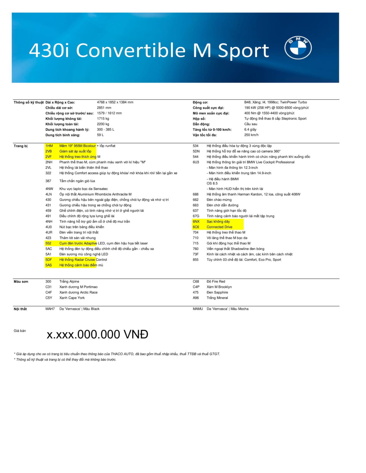 Thông số BMW 430i Convertible 2025 ( Mui Trần)