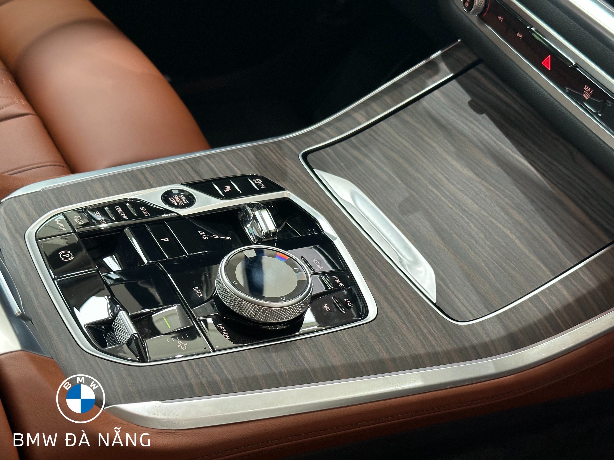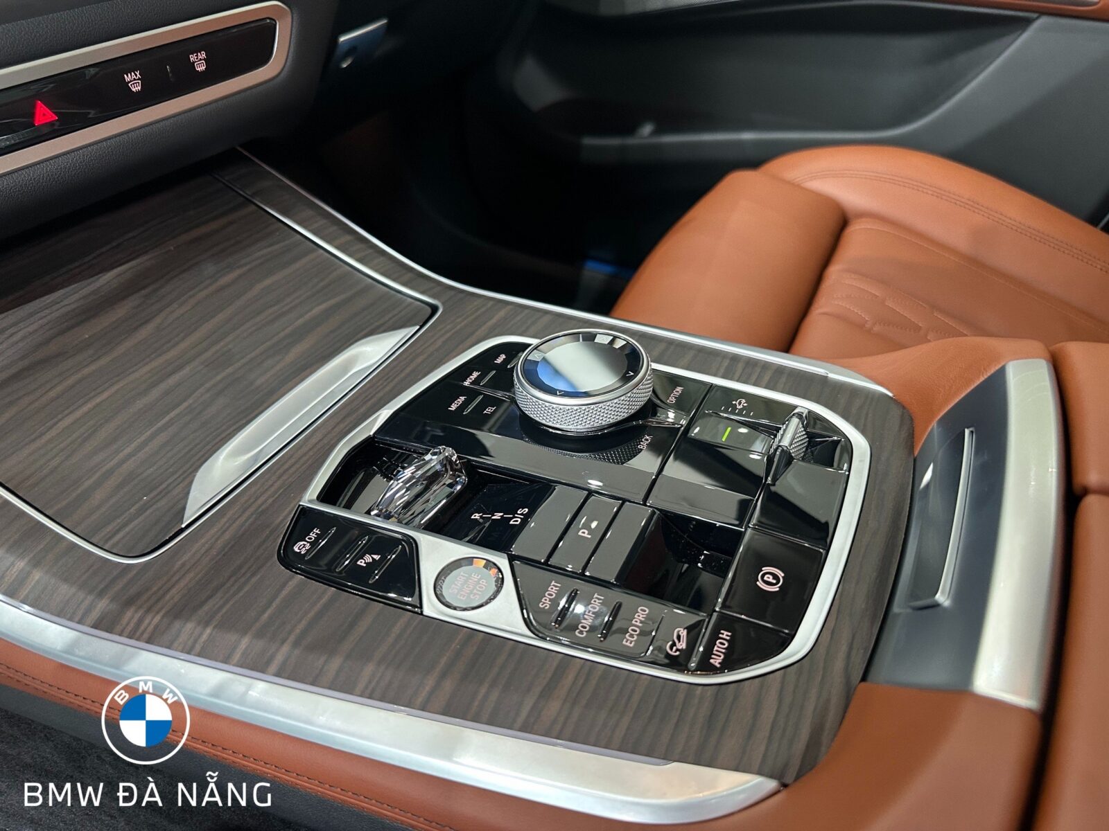 Bảng điều khiển trung tâm với các chi tiết như nút Start/Stop và lẫy gạt cần số thiết kế mới được chế tác chạm pha lê tinh xảo, bố trí khoa học tăng vẻ quý phái, sang trọng cho khoang nội thất của mẫu xe BMW X5 mới.
