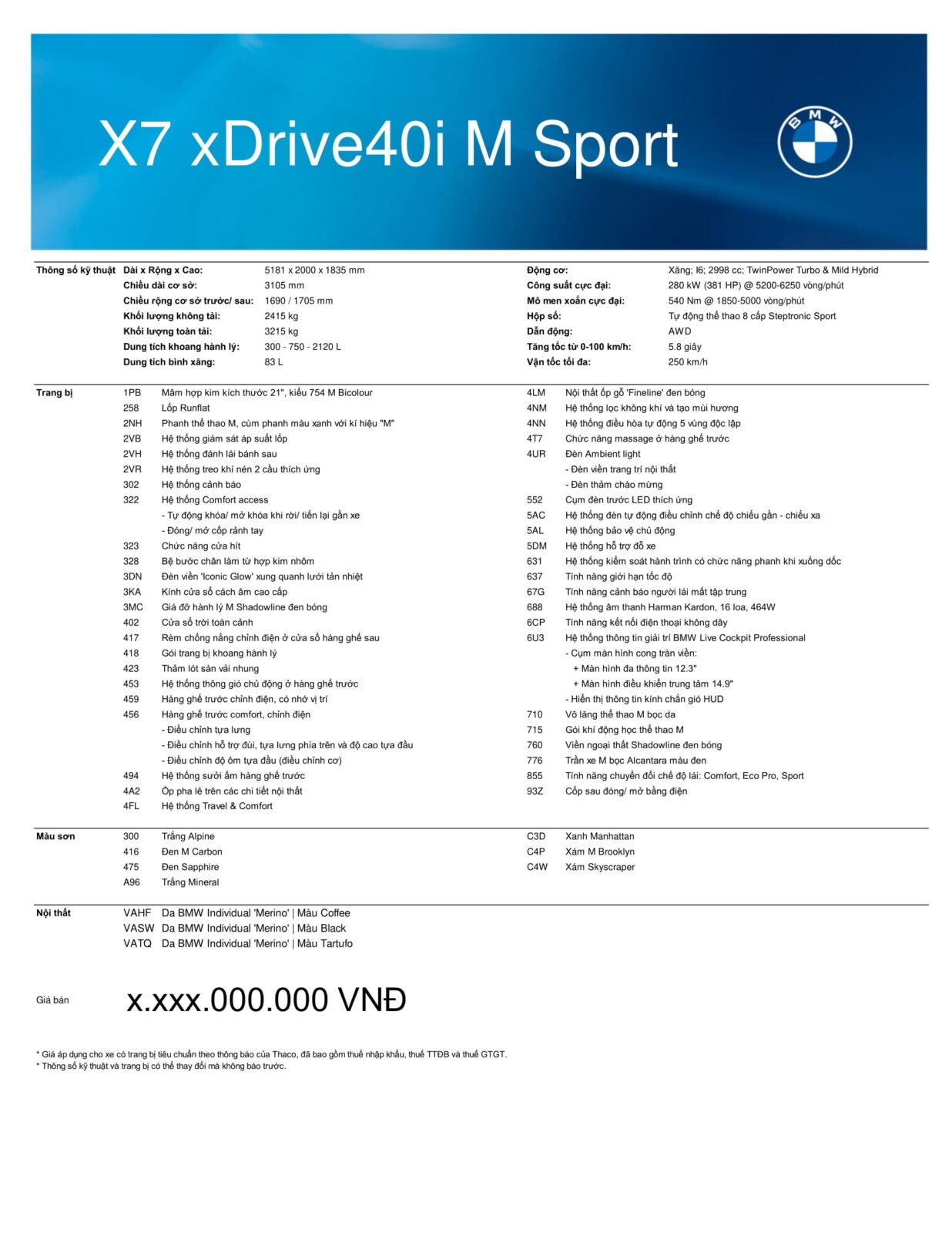 BMW X7 M Sport: | 5.549 tỷ đ |