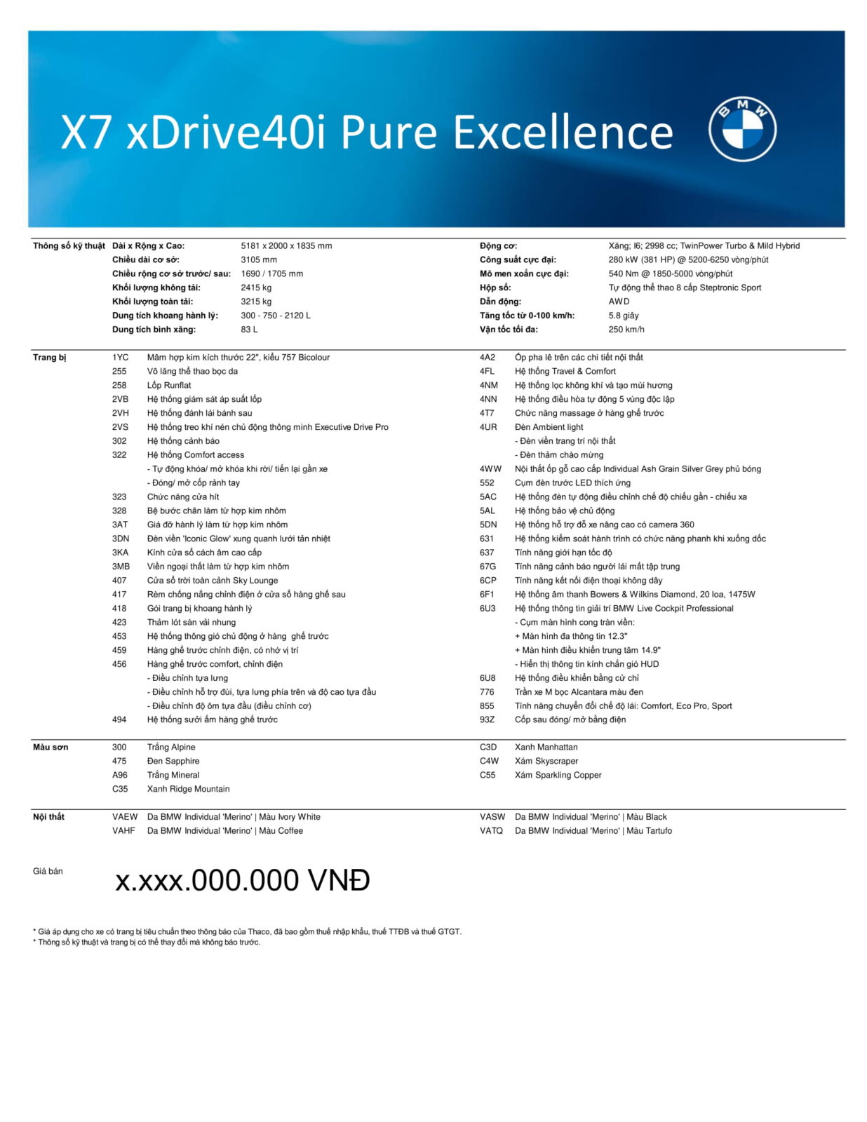 BMW X7 Pure Exellence: | 6.369 tỷ đ |