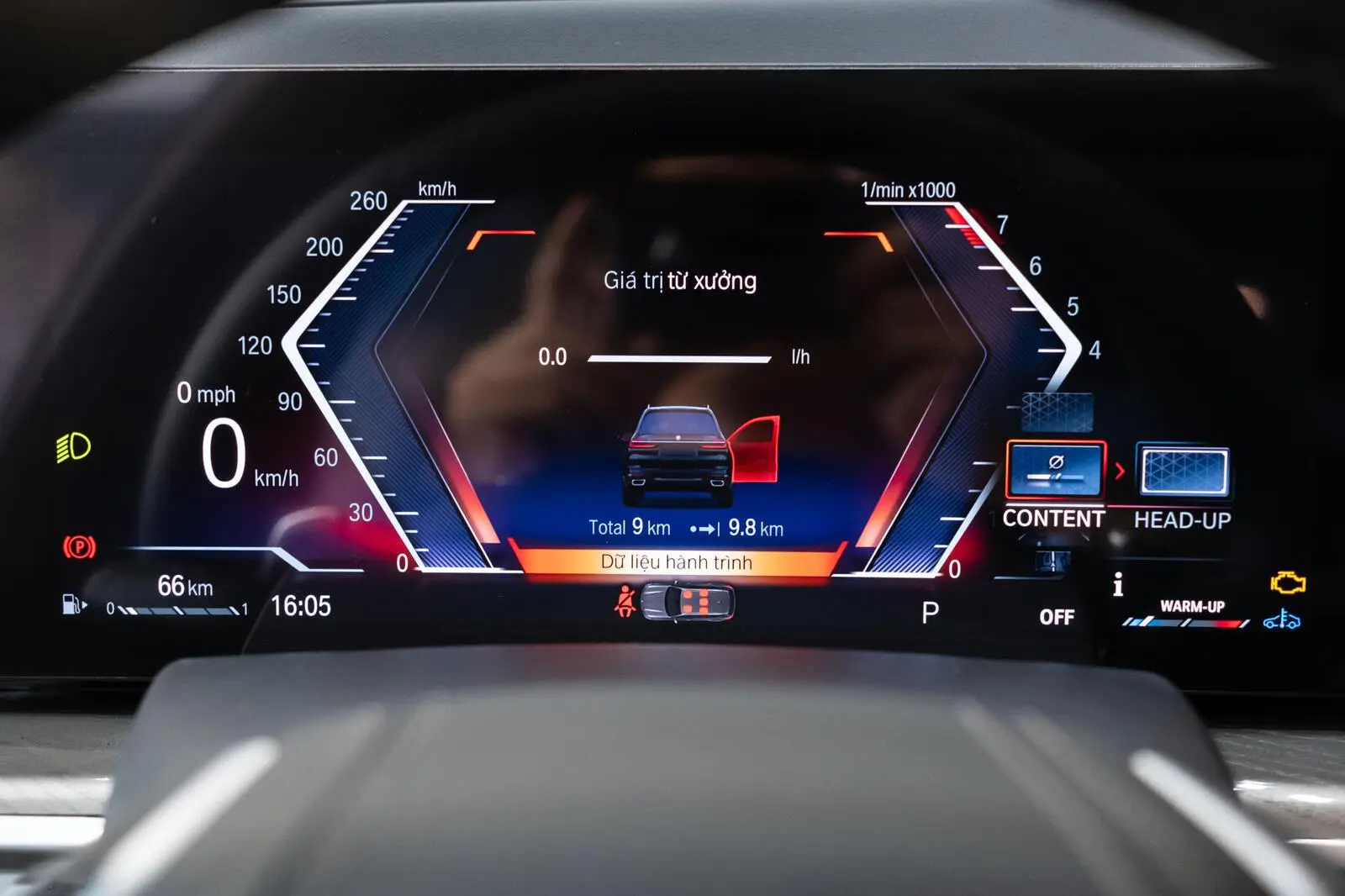 Màn hình hiển thị thông tin người lái với giao diện mới cho cái nhìn hiện đại và nổi bật hơn, tuy kích thước vẫn là 12.3 inch nhưng được đặt bên trong 1 màn hình cong nên cảm giác không gian rộng lớn và phẳng hơn thế hệ trước rất nhiều. Và gần tương tự thế hệ trước, X7 LCI có thể đưa nhiều thông tin hiển thị lên HUD bao gồm cả mũi tên chỉ đường của bản đồ, giao diện mới của HUD cũng trực quan, diện tích quan sát lớn và có nhiều tuỳ chỉnh hơn cho người lái.