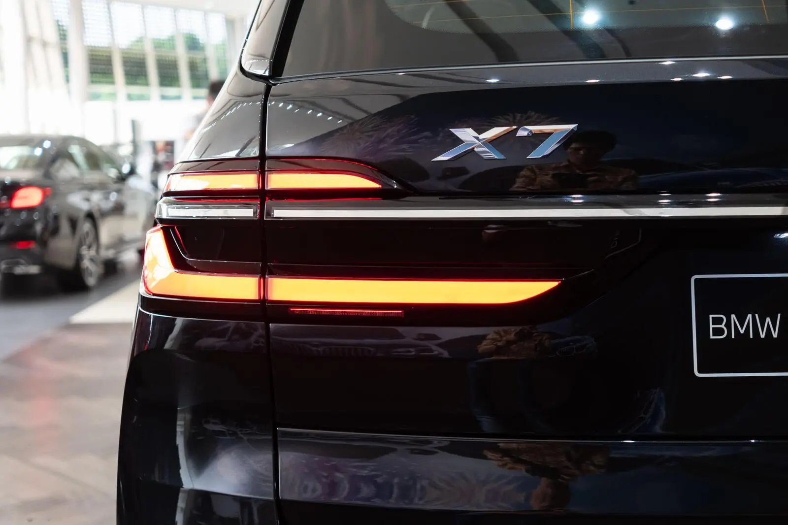 Phần đuôi của X7 có thiết kế khá vuông vắn, tạo thêm không gian phía sau, cũng như sở hữu cụm đèn hậu LED kéo dài sắc nét được nối với nhau qua thanh kim loại mạ crom, vốn đã xuất hiện 7-Series.